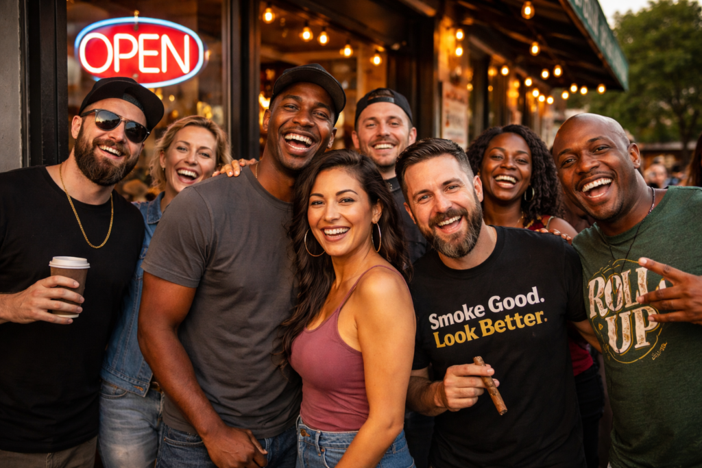 Step inside and experience a different kind of shop. Premium cigars, custom tees, and a laid back vibe that keeps people coming back.